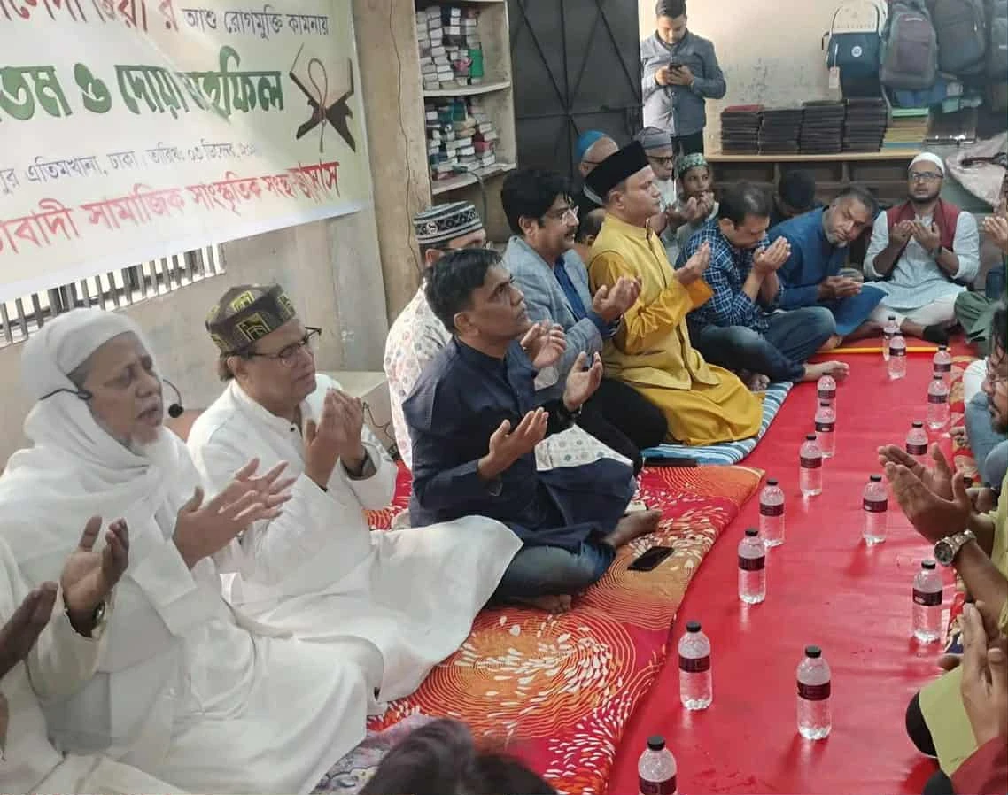 মনিরুল ইসলাম : বাংলাদেশ জাতীয়তাবাদী সামাজিক সাংস্কৃতিক সংস্থা আয়োজনে সাবেক প্রধানমন্ত্রী বিএনপি চেয়ারপার্সন দেশনেত্রী বেগম খালেদা জিয়া'র আশু রোগমুক্তি কামনায় বাড্ডা বরকতপুর এতিমখানা, মধ্যবাড্ডা, ঢাকায় কোরআন খতম ও দোয়া মাহফিল অনুষ্ঠিত হয়।