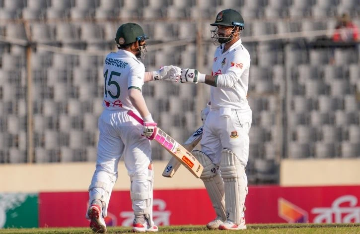 মুশফিক ৯৯ ও লিটন ৪৭ রান নিয়ে দ্বিতীয় দিনের খেলা শুরু করবেন। পঞ্চম উইকেটে এই দুই ব্যাটার এখন পর্যন্ত যোগ করেছেন ৯০ রান।