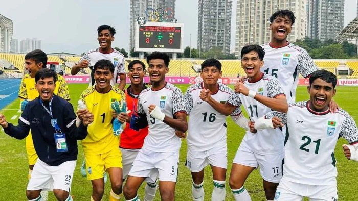 টানা দুই জয়ে বাছাইপর্বের ‘এ’ গ্রুপে ৬ পয়েন্ট নিয়ে শীর্ষে আছে বাংলাদেশ। দুই ম্যাচে তাঁরা প্রতিপক্ষের জালে বল পাঠিয়েছে মোট ১৩ বার। বিপরীতে নিজেদের জাল টানা দুই ম্যাচেই অক্ষত রেখেছেন গোলকিপার মোহাম্মদ আলিফ রহমান।  --- টি স্পোর্টস