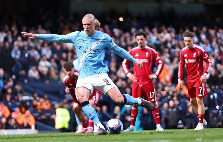 আক্রমণ-পাল্টা আক্রমণের ম্যাচে ৩৯তম মিনিটে এগিয়ে যায় সিটি। নিকো ও’রাইলিকে ভার্জিল ফন ডাইক ডি-বক্সের ভেতর ফাউল করলে পেনাল্টি পায় স্বাগতিকরা। স্পট কিক থেকে বল জালে জড়ান হলান্দ। লিভারপুলের বিপক্ষে টানা চতুর্থ ম্যাচে গোলের দেখা পেলেন এই স্ট্রাইকার।